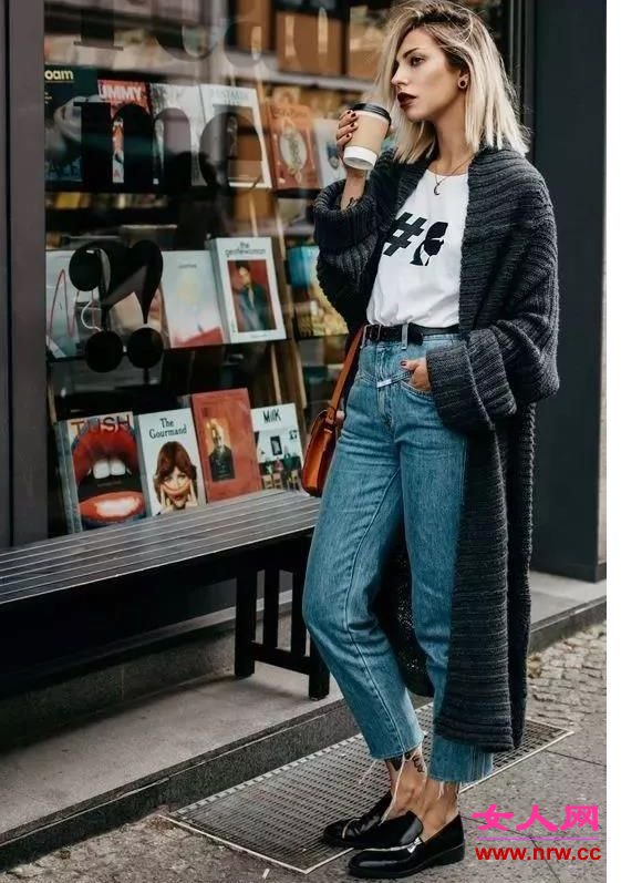 想要拉風(fēng)那必須來(lái)一件長(zhǎng)長(zhǎng)的針織開(kāi)衫,搭配簡(jiǎn)單的牛仔九分褲和平底鞋也酷到?jīng)]朋友。